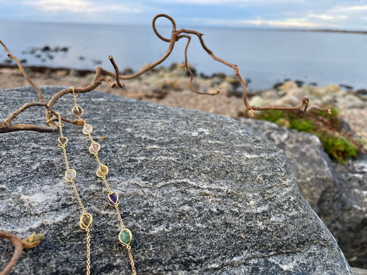 Hos oss hittar du designsmycken med kristaller och stenar gjorda av återvunnet silver med guldplätering. Dessa smycken är inte bara unika utan bär även på unika energier, perfekta för alla tillfällen. Utforska vår kollektion av kristallsmycken och skapa perfekta kombinationer, just till dig. Varesig om du är på jakt efter ett nytt smycke för att förbättra din energi eller en meningsfull gåva till någon speciell. Här finns något för alla.