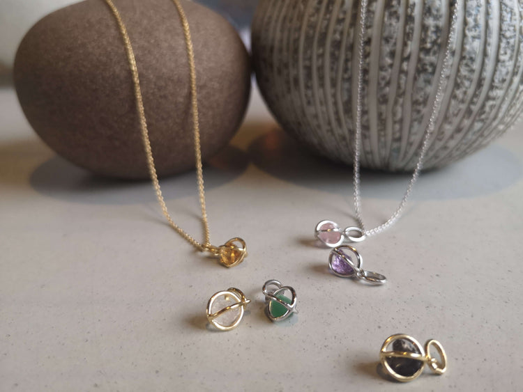 Hos oss hittar du designsmycken med kristaller och stenar gjorda av återvunnet silver med guldplätering. Dessa smycken är inte bara unika utan bär även på unika energier, perfekta för alla tillfällen. Utforska vår kollektion av kristallsmycken och skapa perfekta kombinationer, just till dig. Varesig om du är på jakt efter ett nytt smycke för att förbättra din energi eller en meningsfull gåva till någon speciell. Här finns något för alla.